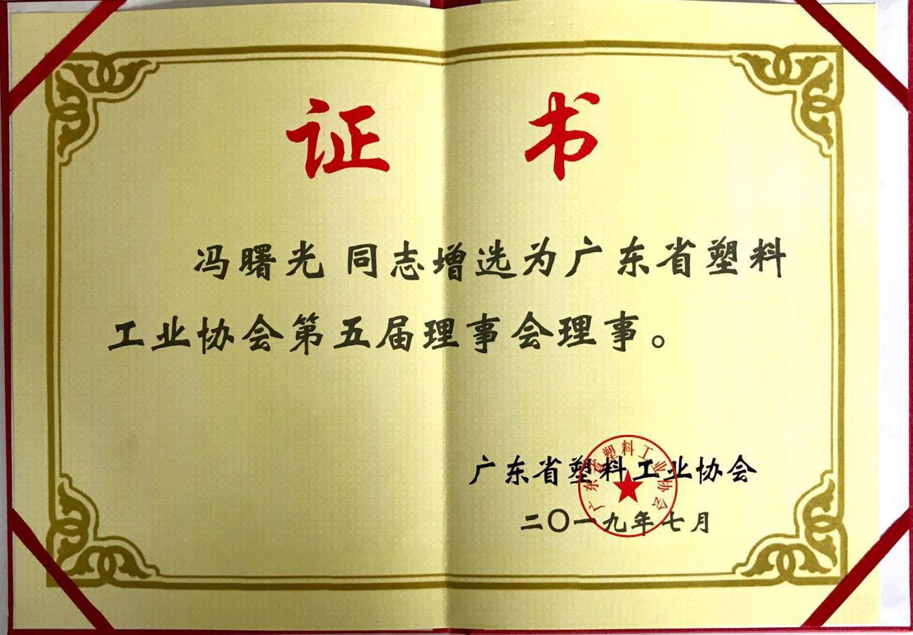 讓我們?cè)谶@里也恭喜馮總增選為廣東省塑料工業(yè)協(xié)會(huì)第五屆理事會(huì)理事。